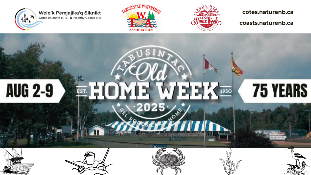 Come join the Tabusintac Watershed Association (TWA) for a day of fun and learning about coastal stewardship at Tabunsintac Old Home Week! Tabusintac Old Home Week is a festival that’s held every 5 years in Tabusintac. It was first held in 1950 and we are planning for a full week of fun from August 2nd to August 9th, 2025 to celebrate 75 years!
